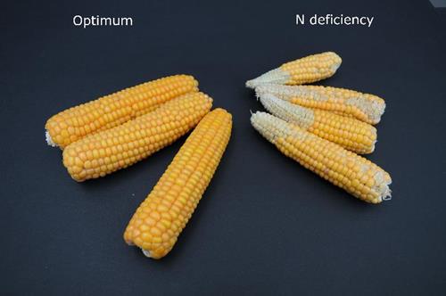 Kleinere kolven en onvolledig gevulde kolven door stikstofgebrek.