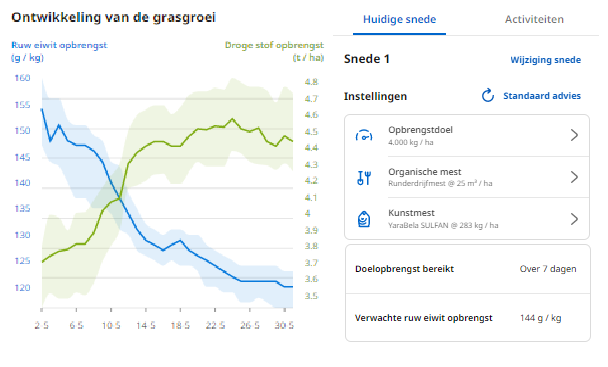 - Advies over het optimale maaimoment op basis van eigen ingestelde doelstellingen
