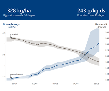 Met de Yara GrassN app kunt u nauwkeurig voorspellen wat de opbrengst en kwaliteit gaan doen. De GrassN app toont dat in een duidelijke grafiek, de ‘grasgroeipluim’. Op grond hiervan kunt u voor uw percelen een optimaal maaimoment plannen.